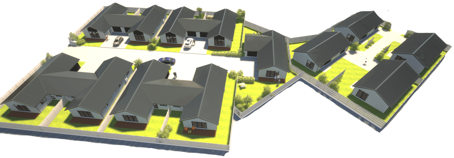 These Clutha Central homes will be clad in brick with some feature linea board, they will have a coloursteel roof & spouting with coloured PVC downpipes.
